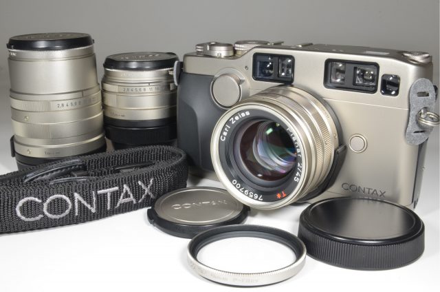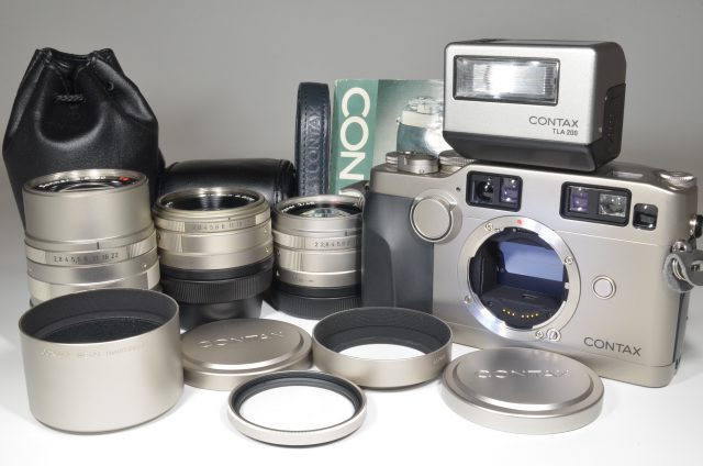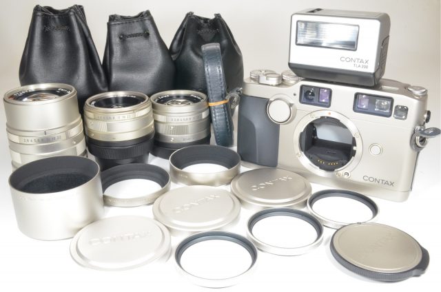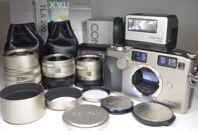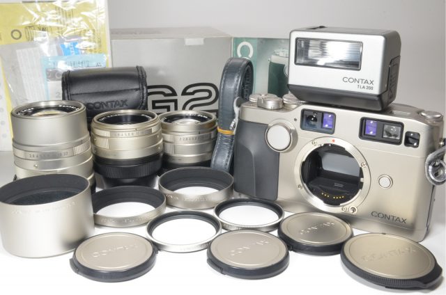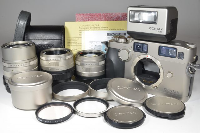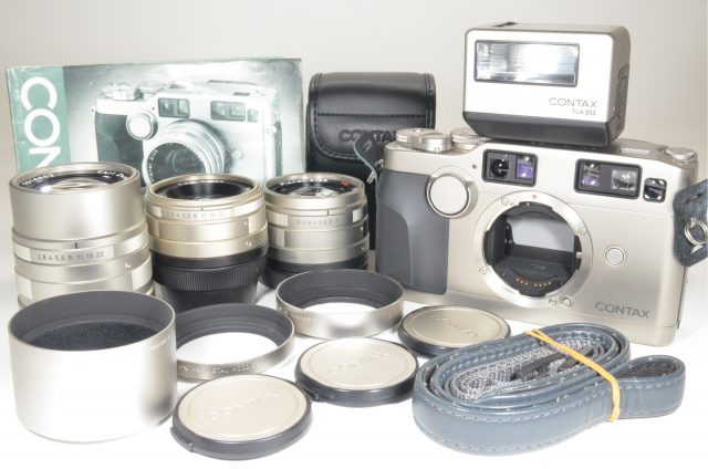 CONTAX G2 camera with Planar 45mm f2, Biogon 28mm f2.8, Sonnar 90mm f2.8, TLA200 #a1095