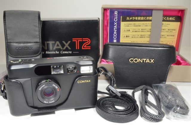 CONTAX T2 Black Limited Film Camera boxed w/ Full Leather Case #a1009