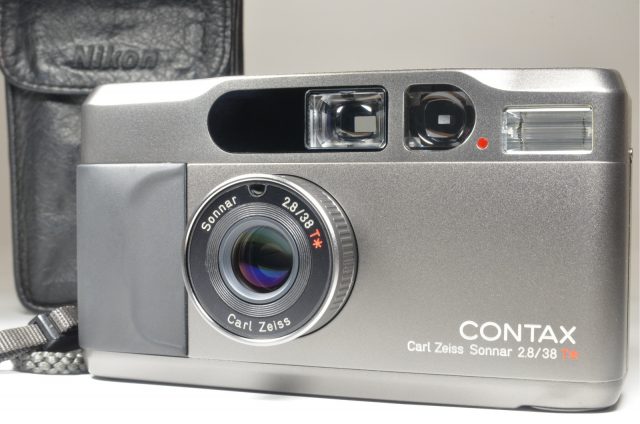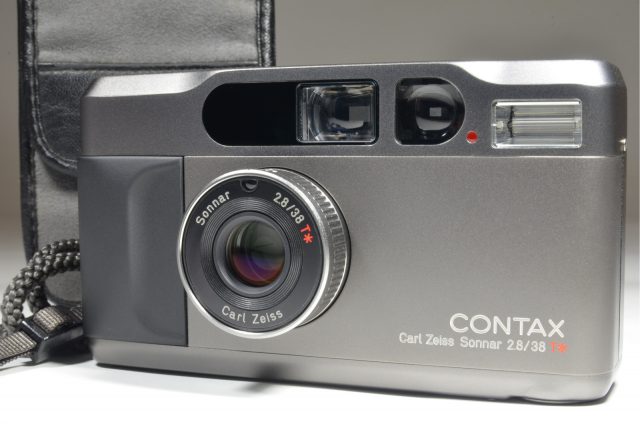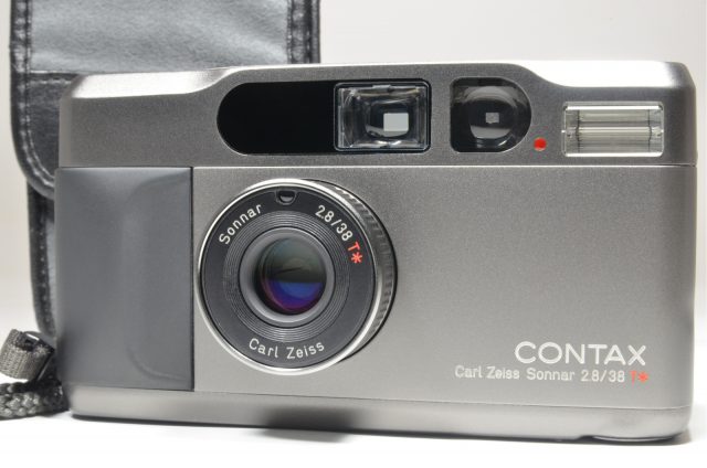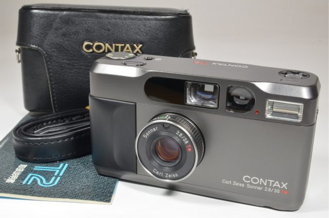 CONTAX T2 Titanium Black Film Camera w/ Full Leather Case Shooting Tested #a1375