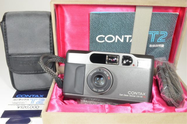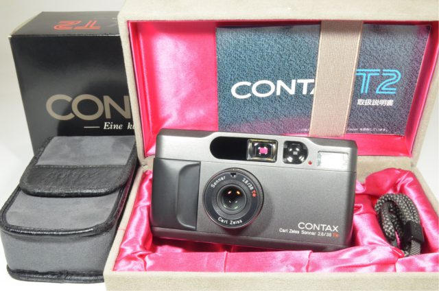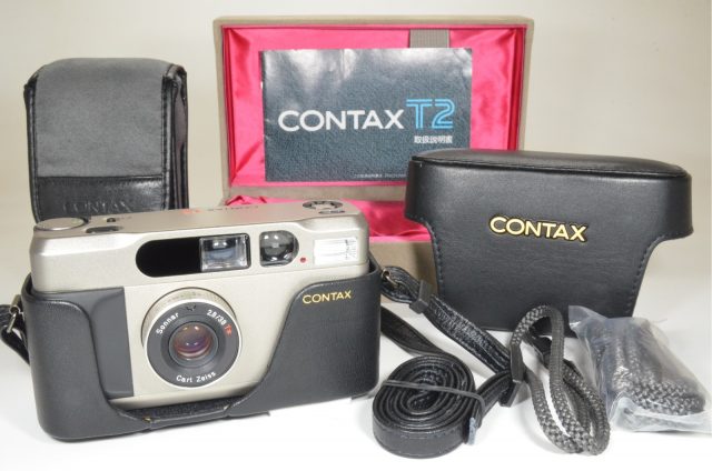 CONTAX T2 Titanium Black Point & Shoot 35mm Film Camera boxed from Japan #a1142