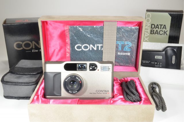CONTAX T2 Titanium Silver Camera boxed with extra Data Back Panel #a0933