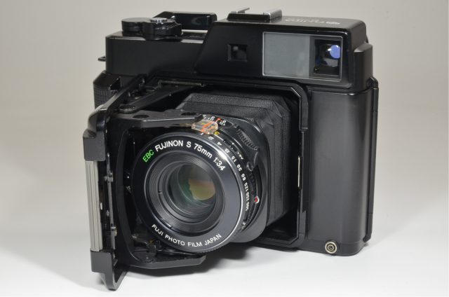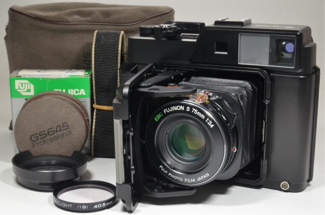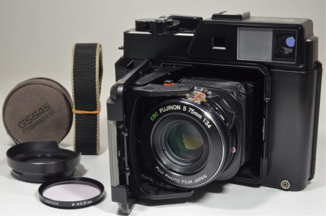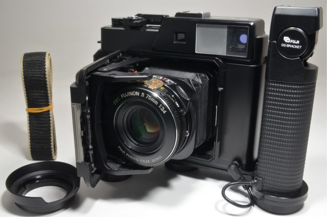 Fujifilm Fujica GS645 75mm f3.4 with GS BRACKET Grip and Lens Hood #a0646